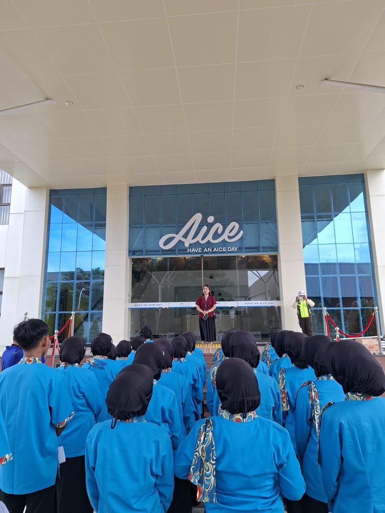 Pihak manajemen PT Aice menyambut hangat para siswa di lobi perusahaan. Selanjutnya, pemandu menjelaskan proses pembuatan es krim secara mandiri kepada seluruh peserta. Siswa juga mendapat penjelasan langsung tentang teknologi tinggi yang digunakan dalam setiap tahap produksi. Sebagai penutup, PT Aice memberikan kesempatan kepada siswa untuk mencicipi es krim produksi mereka sendiri.